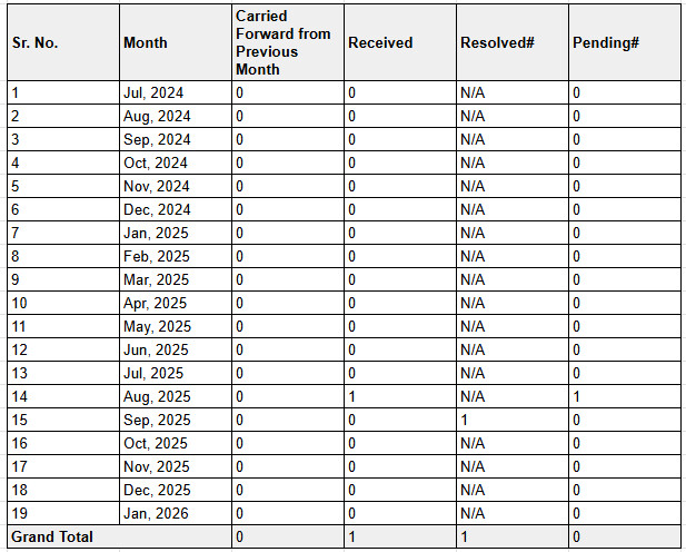 ^ Average Resolution time is the sum total of time taken to resolve each complaint, in days, in the current month, divided by the total number of complaints resolved in the current month.